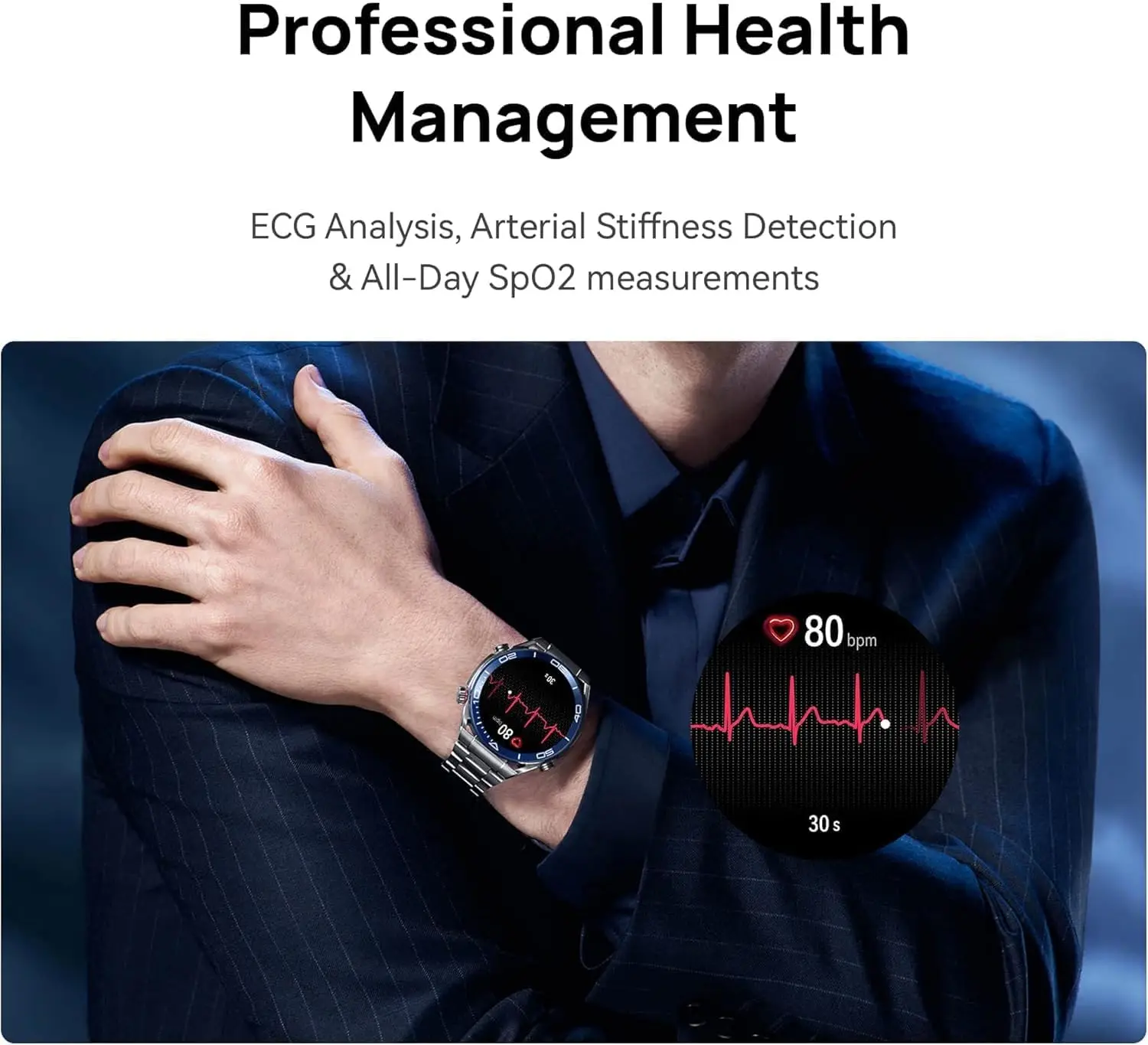 - Health Tracking: Heart rate, SpO₂, sleep, stress